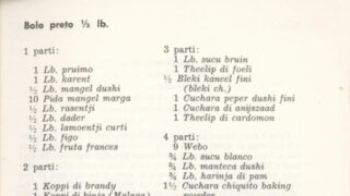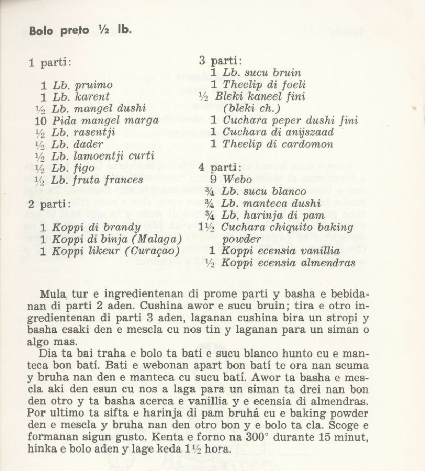 Bolo di pruimen • Pastechi • Cabrito Stoba (Goat Stew) • Keeshi Yena • Pan Bollo • Pan Bati • Drikidek • Kool Stoba (Cabbage Stew) • Pan Dushi (Sweet Bread) • Bolo Preto ½ lb (Black Cake)
