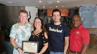 Ms. Marouska Heyliger, representing the Aruba Tourism Authority, along with staff members of Divi & Tamarijn Aruba All Inclusive, presented the certificate, offered gifts, and expressed heartfelt thanks to the honoree for choosing Aruba as his favorite vacation destination, his home away from home.