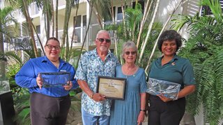 Ms. Marouska Heyliger, representing the Aruba Tourism Authority, and staff members of Renaissance Ocean Suites bestowed the certificate upon the honorees, presented them with gifts, and thanked them for choosing Aruba as their favorite vacation destination, as their home away from home.