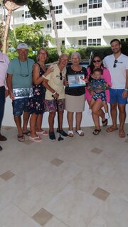 Ms. Candace Gumbs, representing the Aruba Tourism Authority, along with staff members of Marriott`s Aruba Ocean Club, presented the certificate, offered gifts, and expressed heartfelt thanks to the honorees for choosing Aruba as their favorite vacation destination, their home away from home.